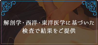 当院ではお身体を適切に把握し、最適な施術をご提供するために解剖学・西洋・東洋医学の観点も取り入れた検査を行っています。